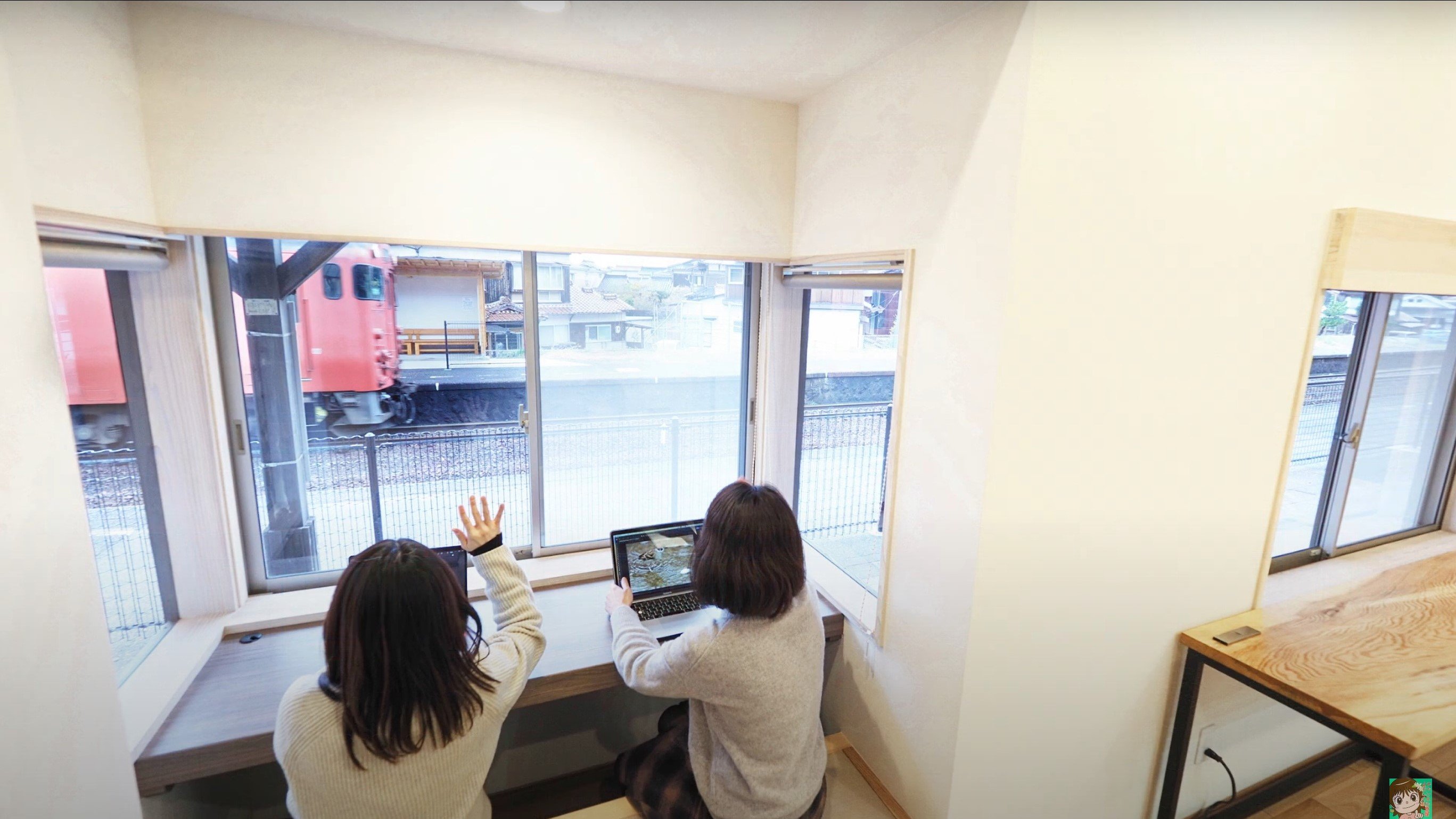 さらに、室内には大きな出窓があるのが特徴。JR三見駅は無人駅だが、列車は往来していて間近で見ることもできる。♯さんちゃんちの利用期間は1週間~最長4週間までで、利用料金は6泊7日で1組7000円(※)とリーズナブルなのもうれしい。※6泊7日以降は、1泊追加ごとに1000円かかる。