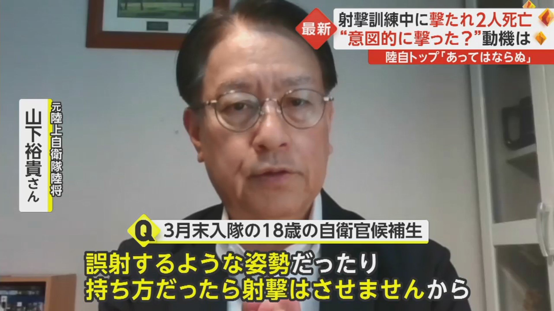 自衛官候補生(18)は、なぜ自動小銃を指導部の隊員に向けて発砲したのか。元陸上自衛隊幹部の山下さんは「誤って撃つことはありえない」と指摘する。