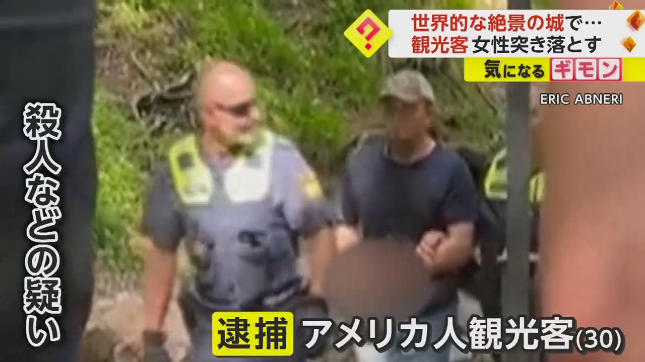 Tシャツにジーパン姿の男が、警察に連行されている。殺人などの疑いで逮捕された、30歳のアメリカ人観光客だ。