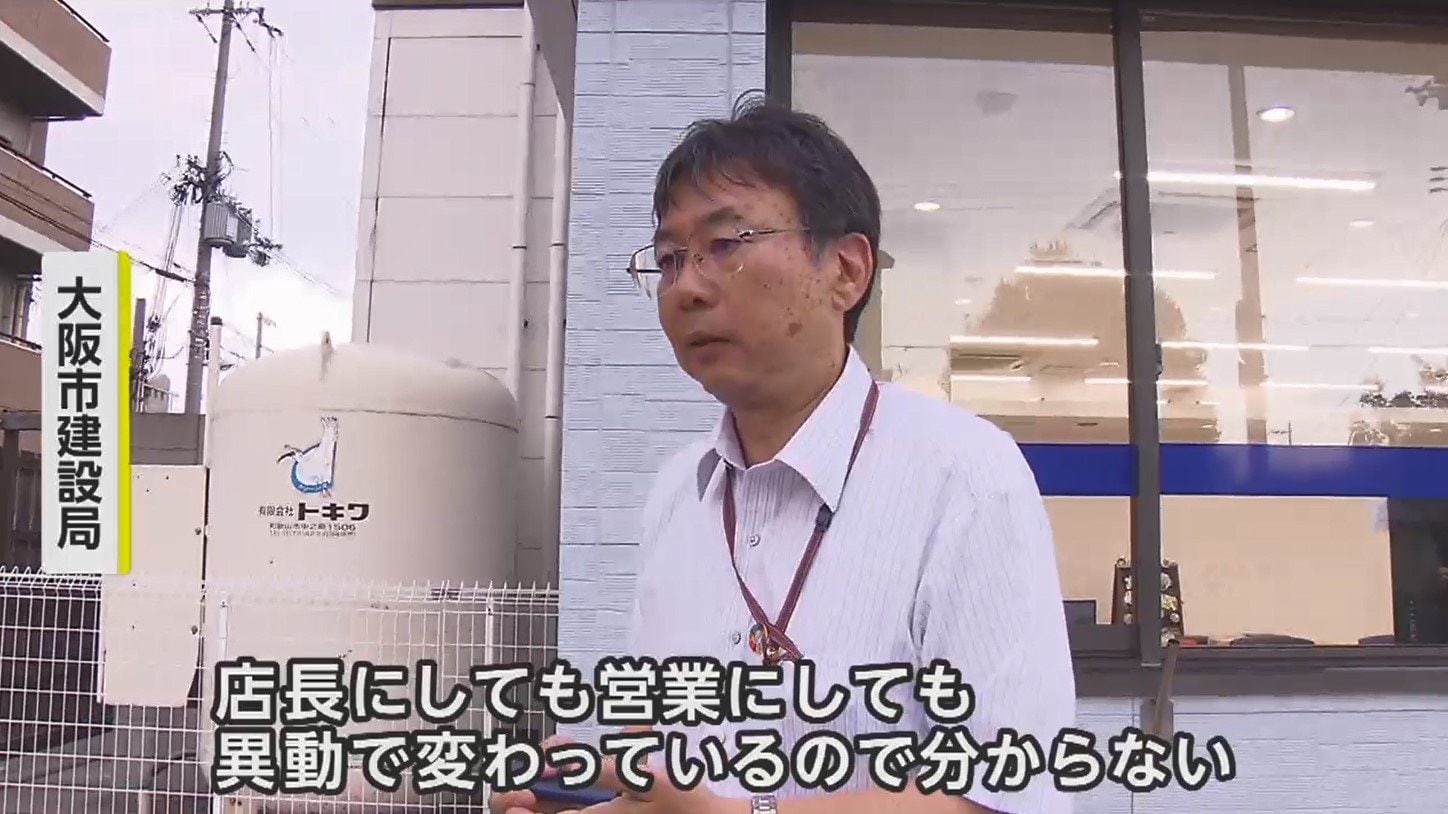 同じく店の前だけ街路樹が枯れ、2019年に樹木が切り取られていた大阪市東住吉区の店舗では、市職員が街路樹が枯れた経緯などを聞き取りに訪れていたが…