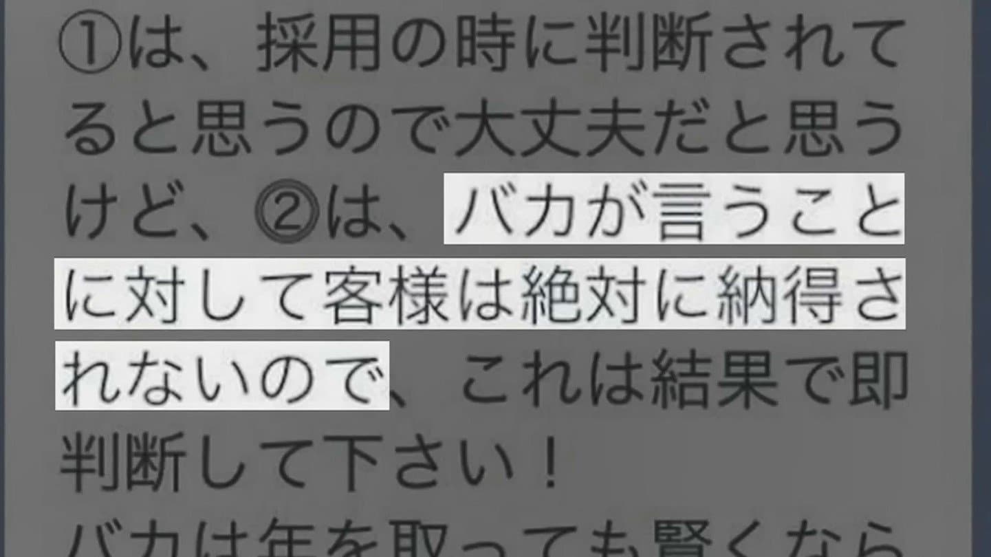 「バカは年を取っても賢くならない!」「バカ=お客様の気持ちが分からない人!」「バカが言うことに対して客様は絶対に納得されない」