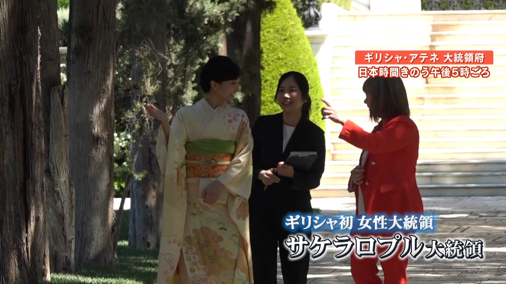 日程も中盤を迎え、日本時間28日には大統領を表敬訪問。ギリシャ初の女性大統領、サケラロプル大統領の案内で並木道を進まれました。