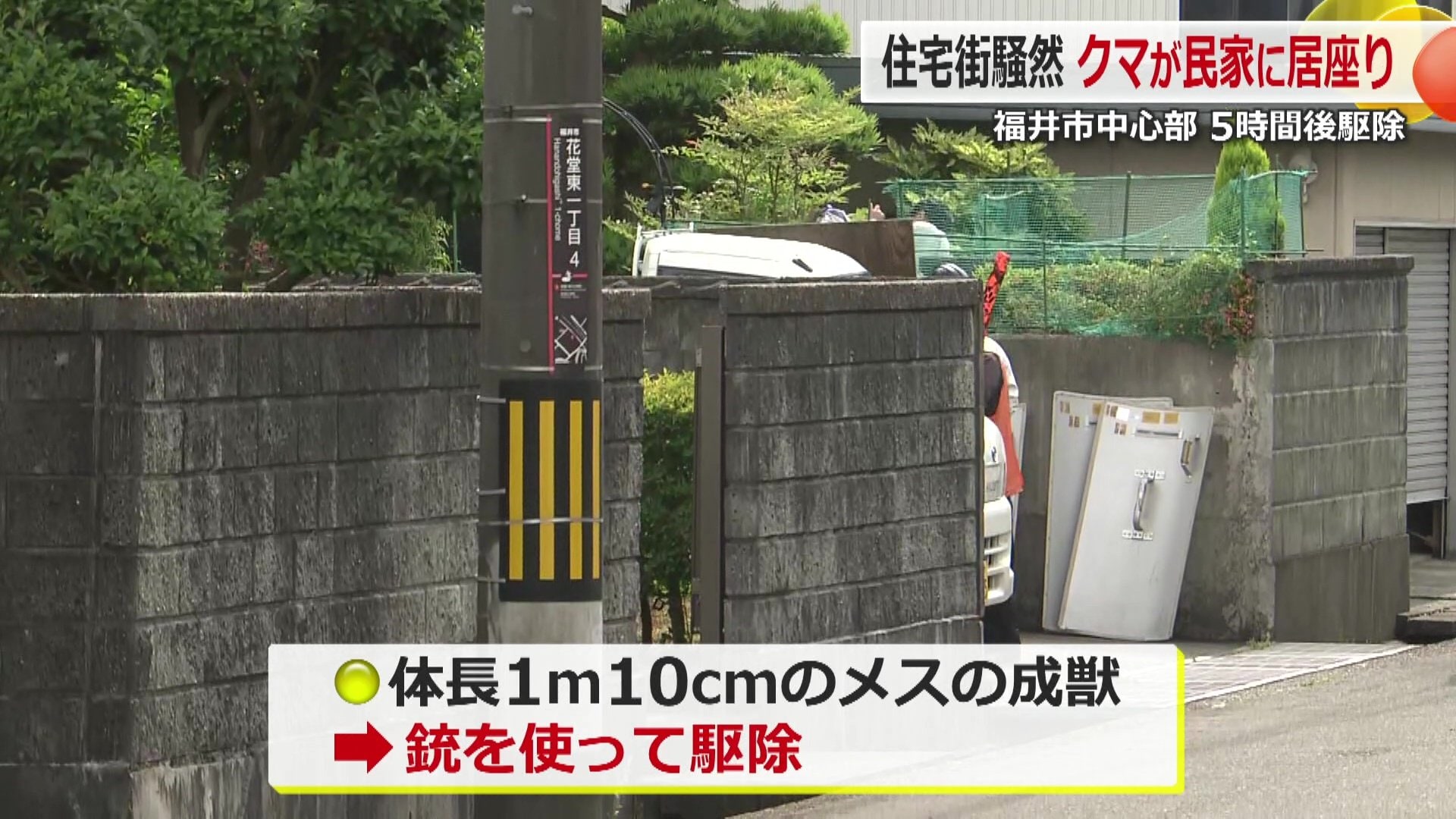住宅街に2度、銃声が響き渡った。市によれば、クマは体長1m10cmの雌の成獣で「おりでの捕獲や麻酔銃での対応が困難」と判断され、銃を使って駆除したという。