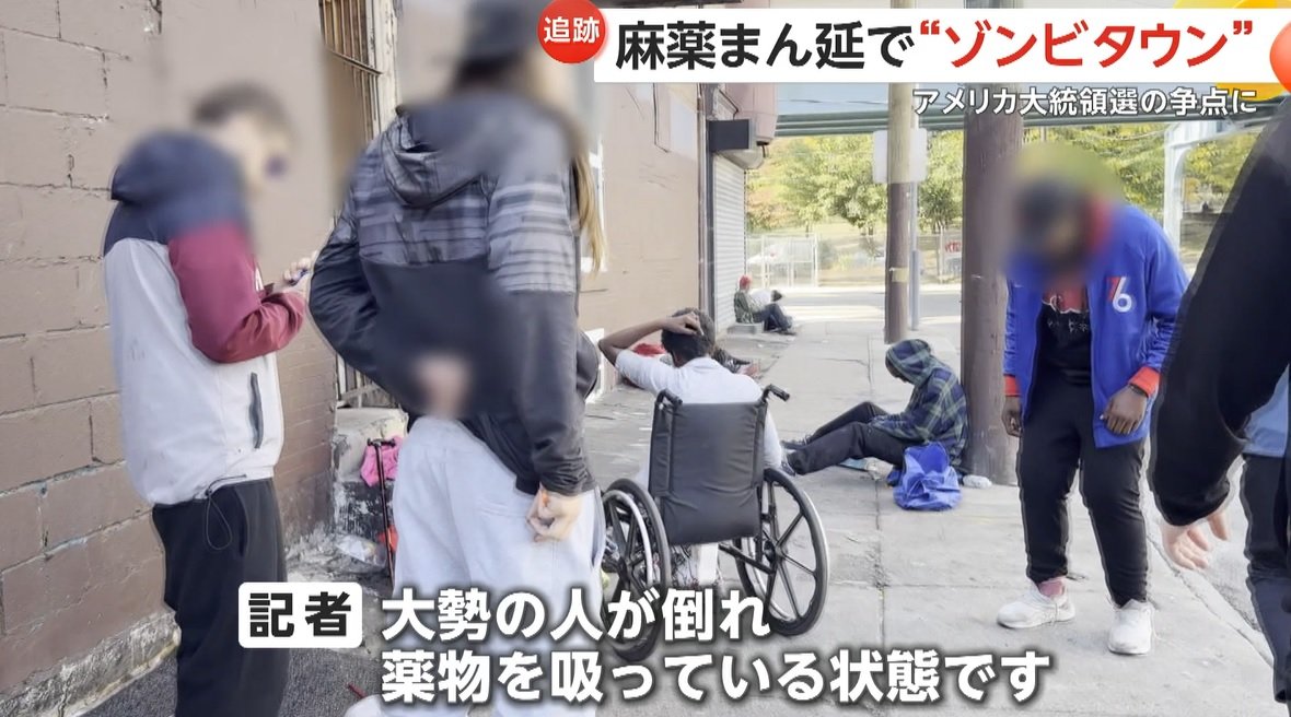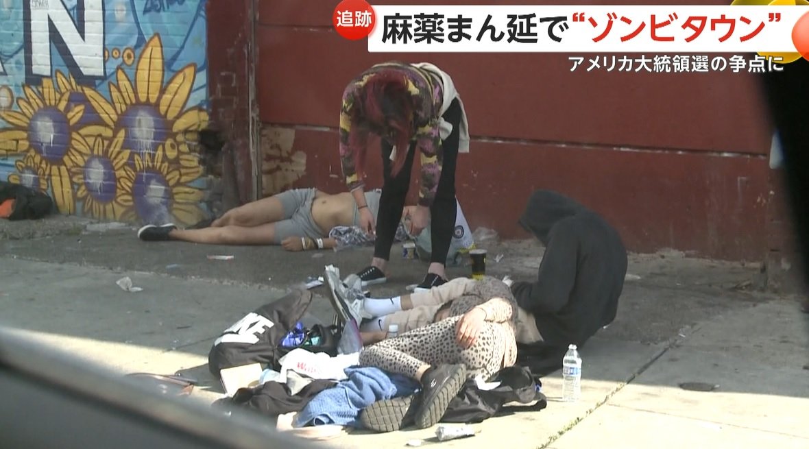 街の中では路上に倒れ込む人、前屈みになる人など、薬物中毒とみられる人達が次々に見つかった。