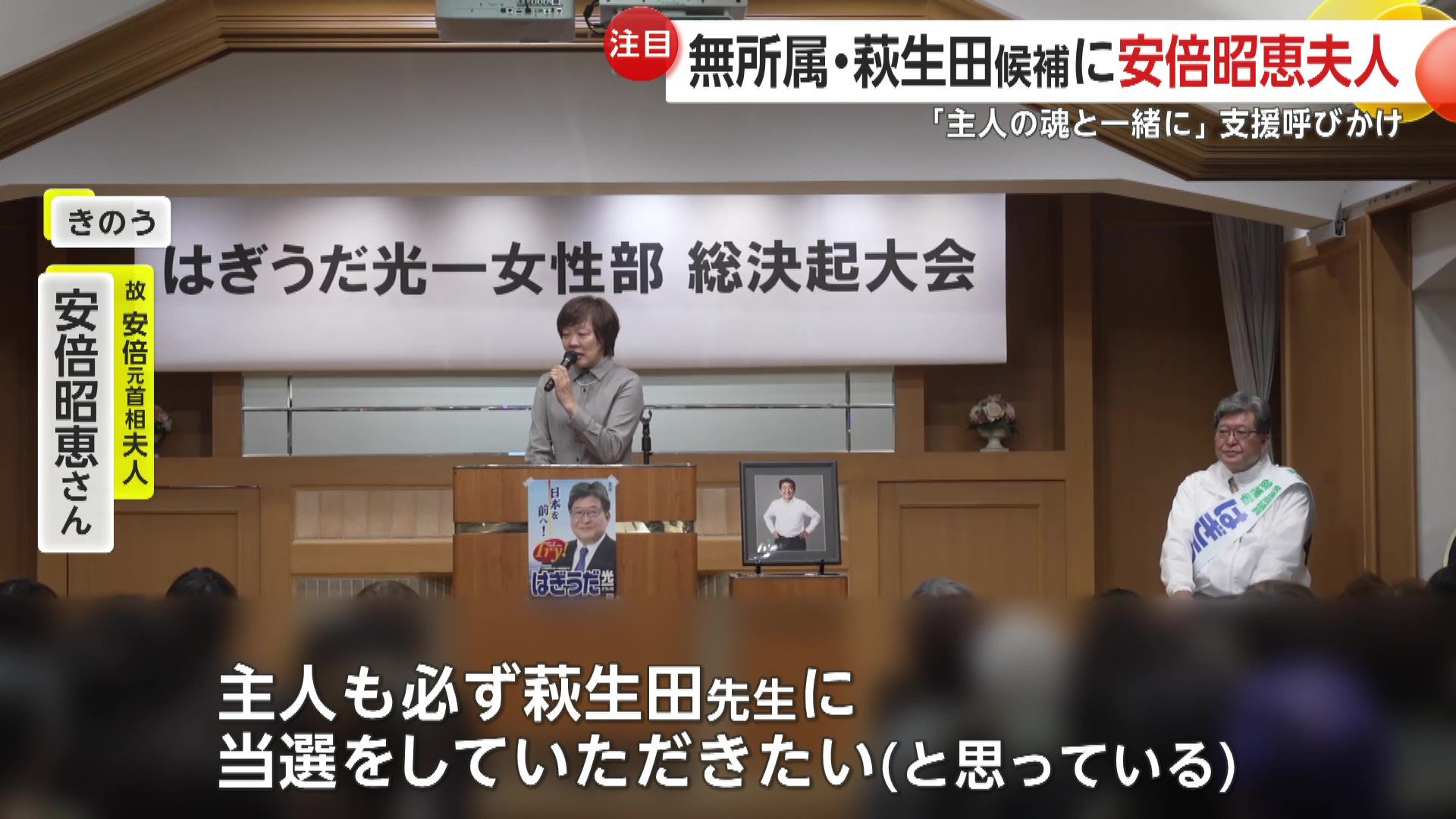 きょうは主人の魂と一緒に来ている。主人も必ず萩生田先生に当選をしていただきたい(と思っている)。(故 安倍元首相と萩生田候補は)大臣とか議員とかそういう関係ではなく、本当に信頼し合う人間同士としてお付き合いさせていただいたんだなと。