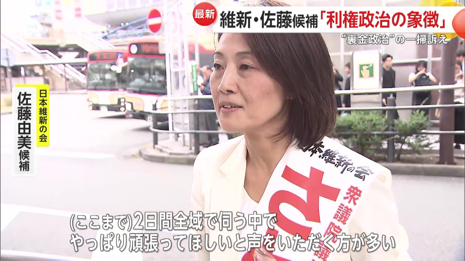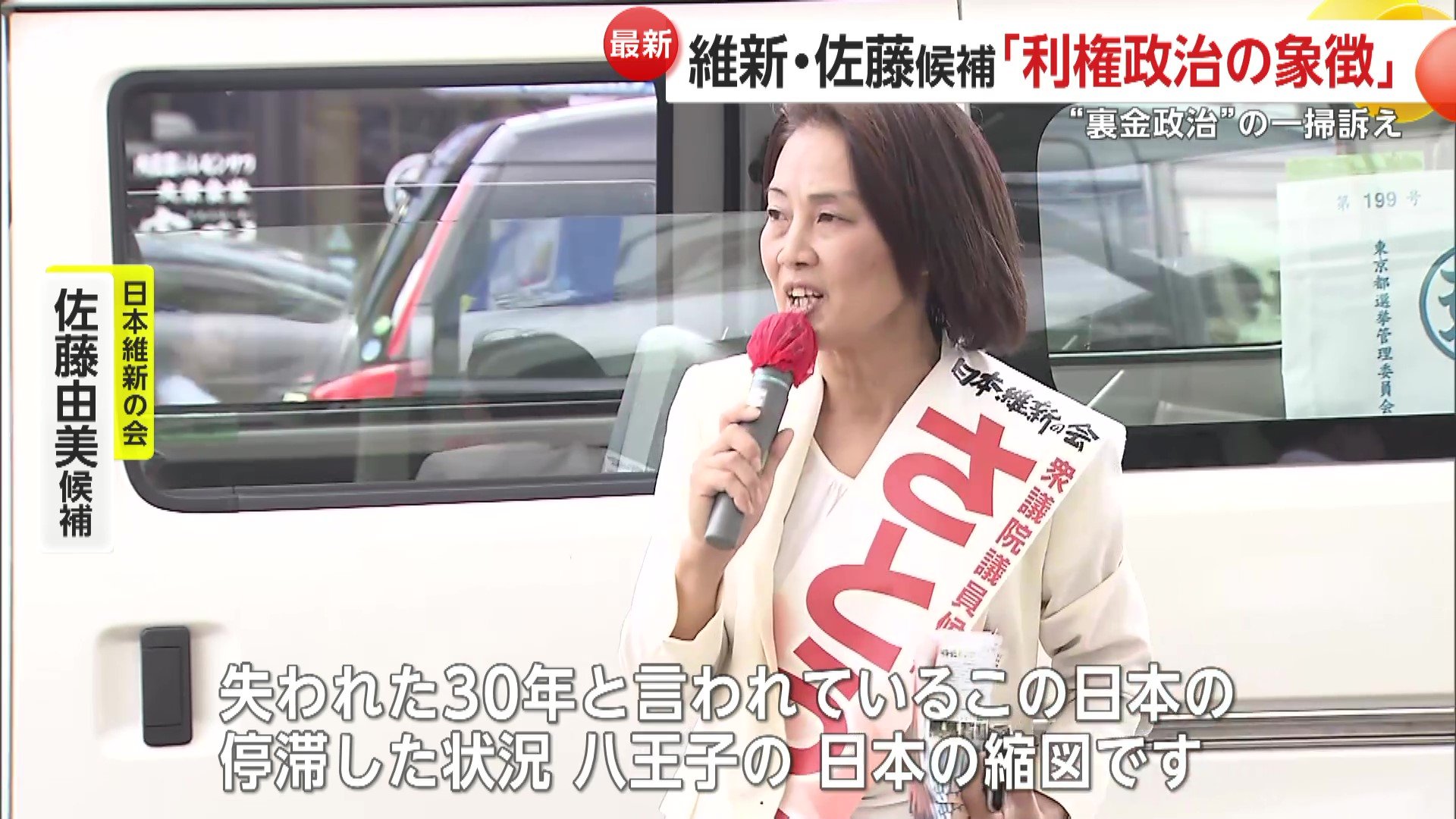 維新・佐藤由美候補「内輪の人だけに応える政治が日本の地盤沈下を」