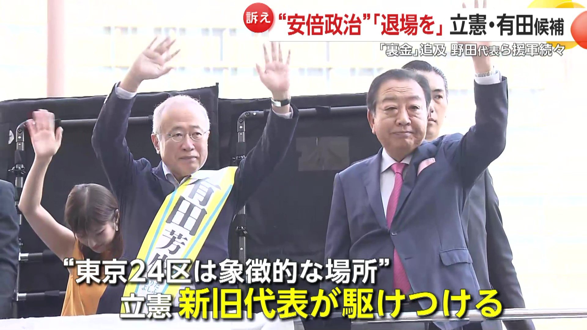 立憲にとって、東京24区はこの選挙戦での象徴的な場所で、新旧代表らが連日、駆けつけている。