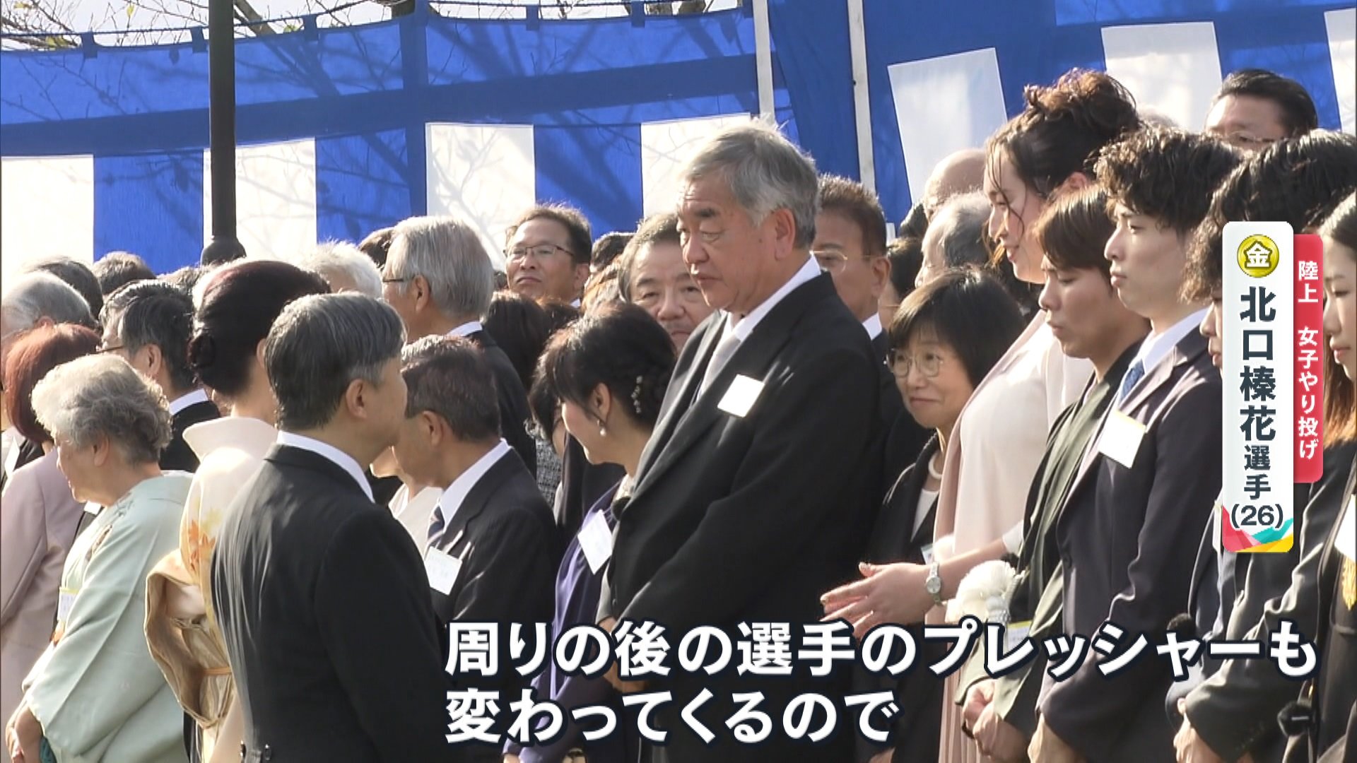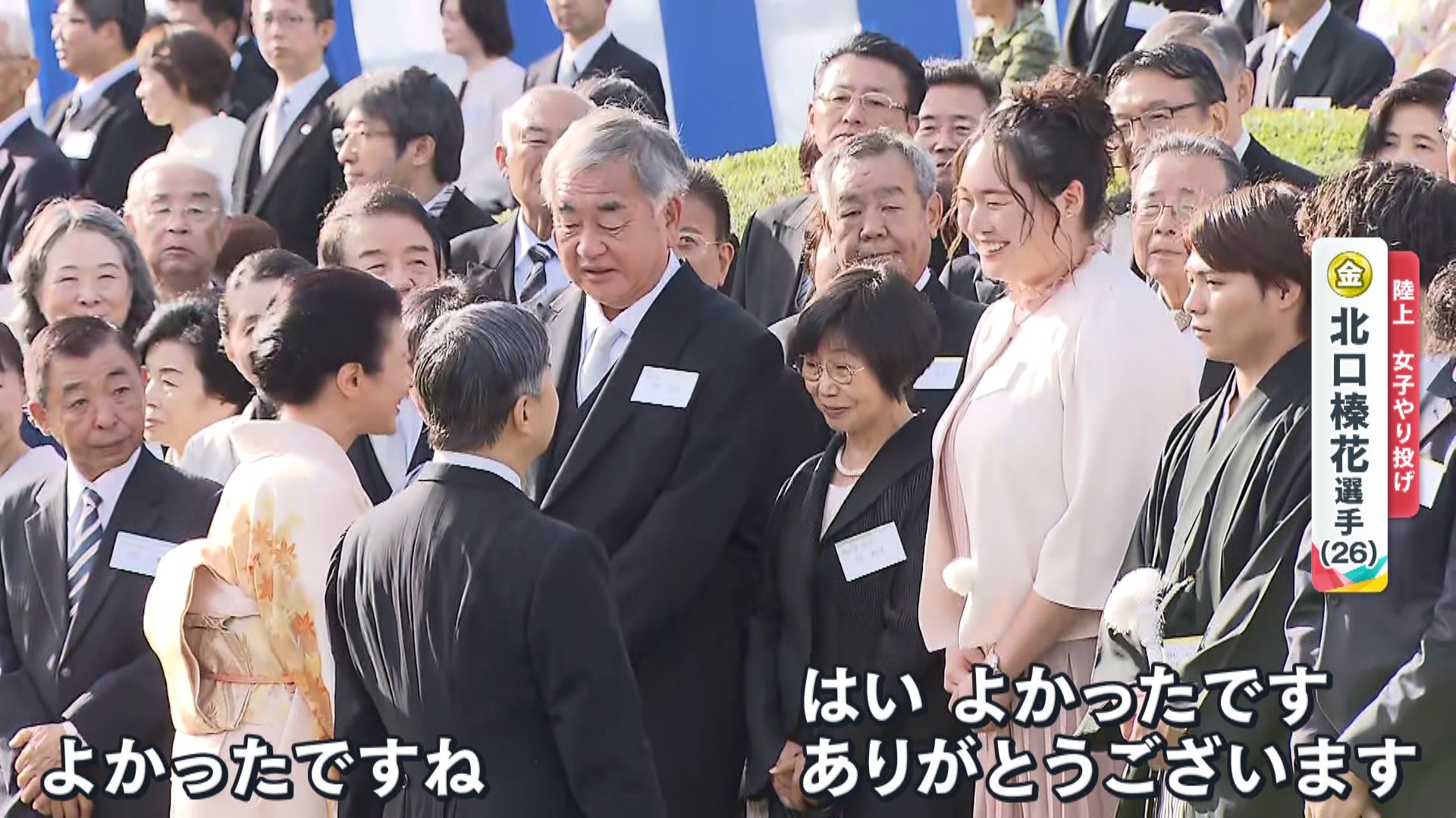 陸上女子やり投げで、1投目で65m80cmを記録し、金メダルを獲得した北口榛花選手(26)に両陛下が声をかけられます。
