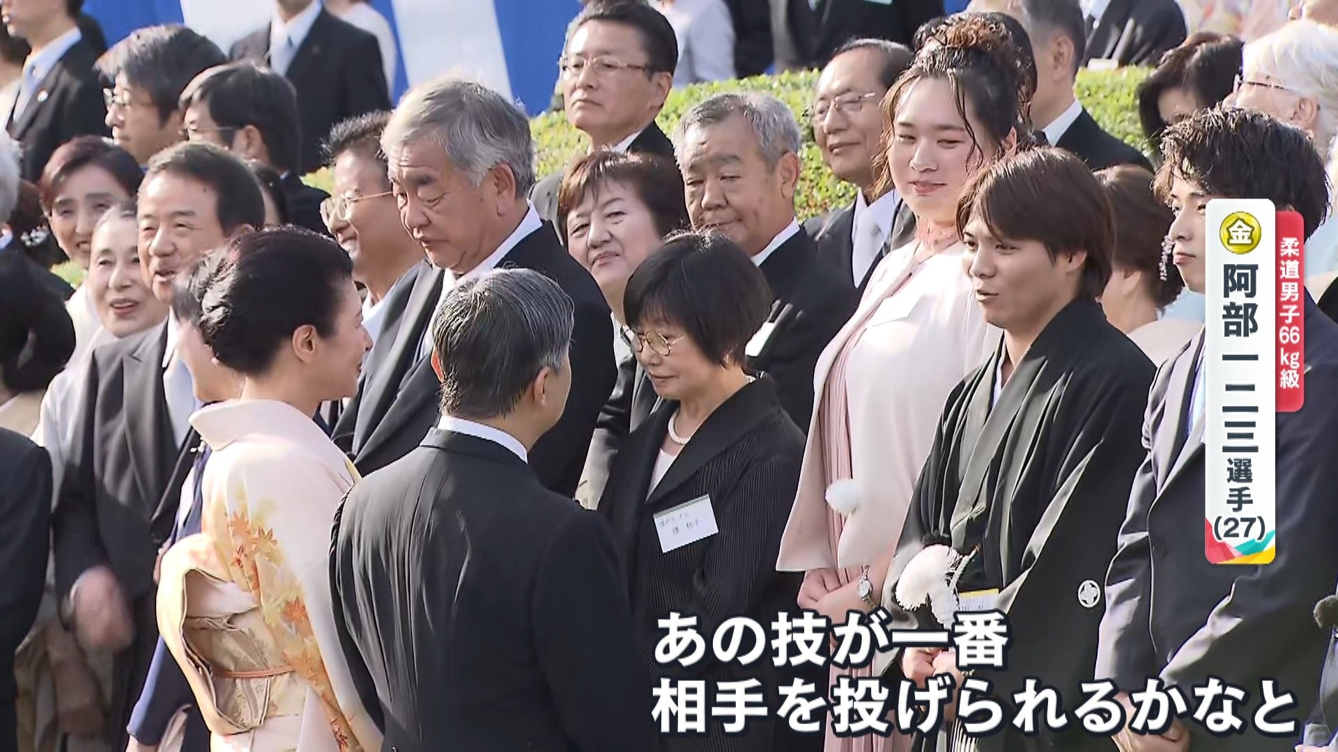 阿部一二三選手「はい、あの技が一番相手を投げられるかなと。最近は袖釣り込み腰が、すごい海外の選手に効くのかなと」