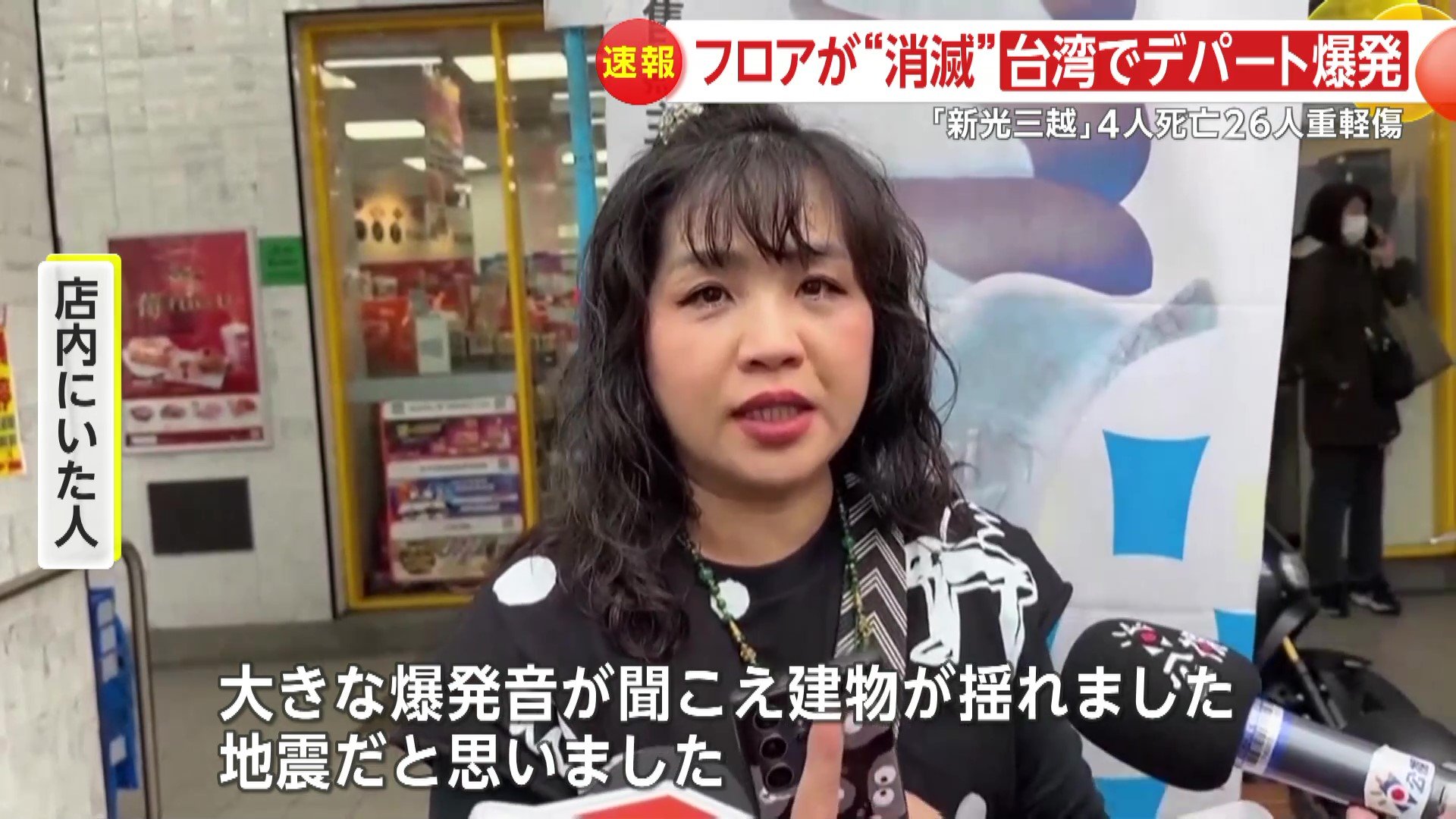日本時間の13日正午過ぎ、台湾中部の台中市にあるデパート「新光三越」で爆発が起こった。