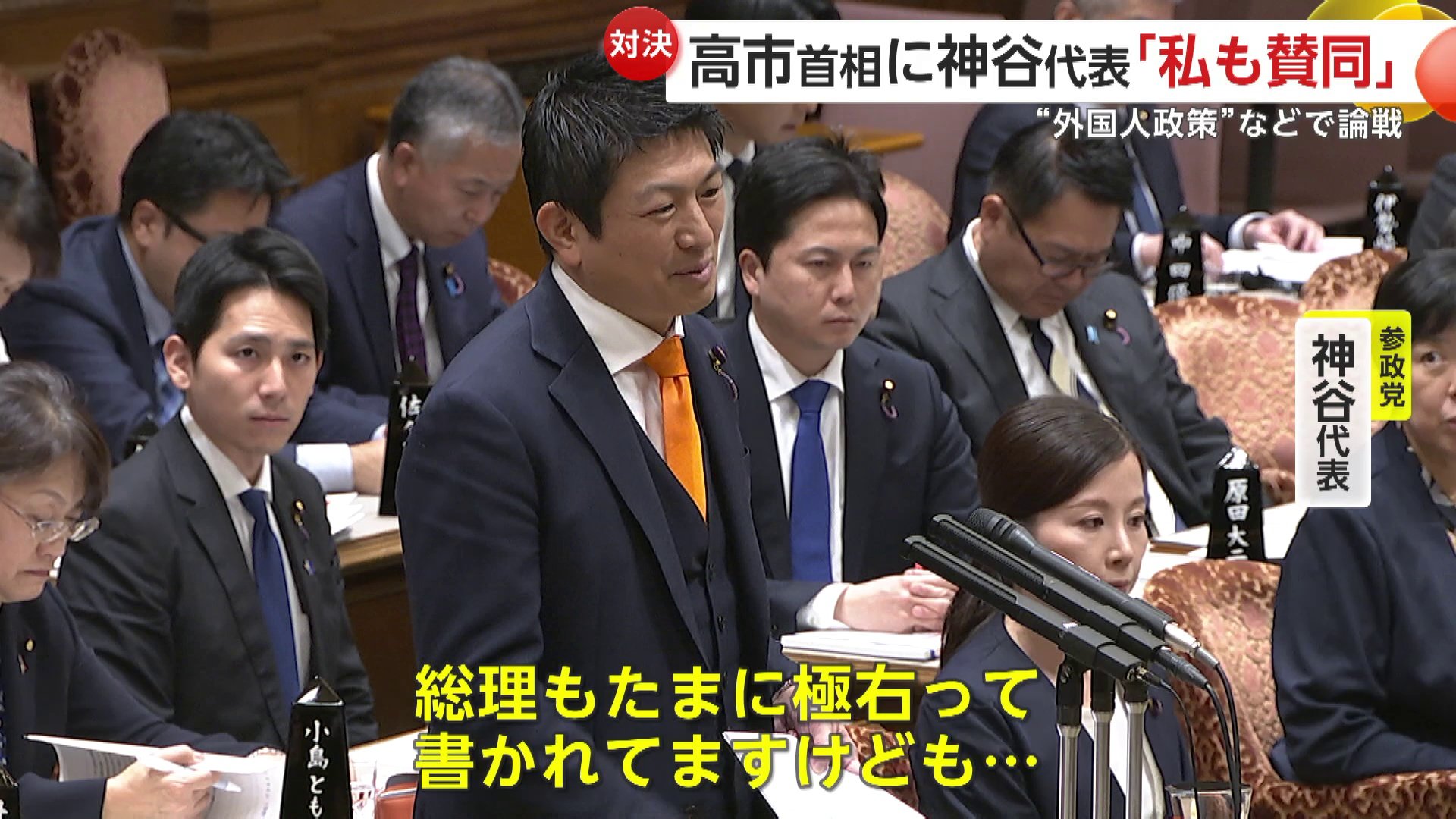 高市首相は「日本人ファースト」を政策の中心に掲げている参政党・神谷代表との初の本格論戦に臨んだ。