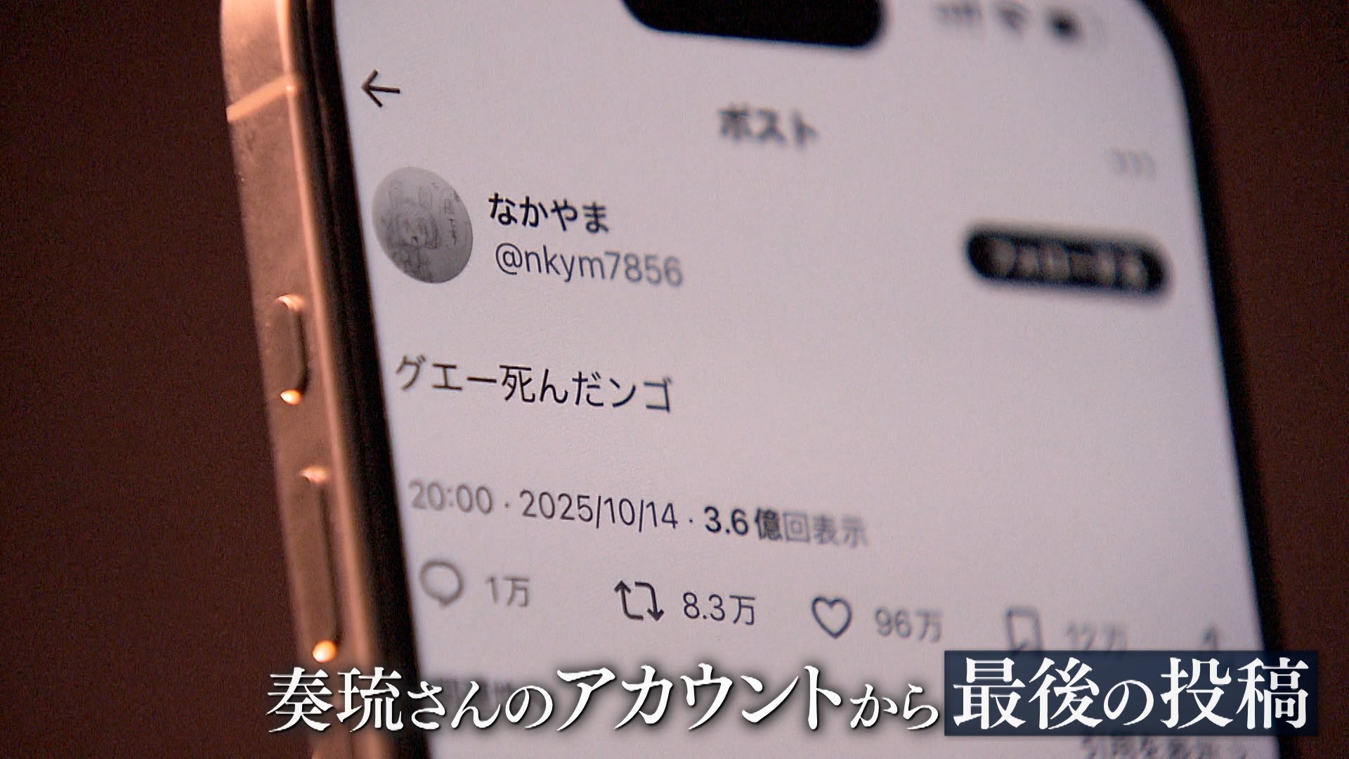 なんと、亡くなったはずの奏琉さんから最後の投稿がXに投下されたのだ。