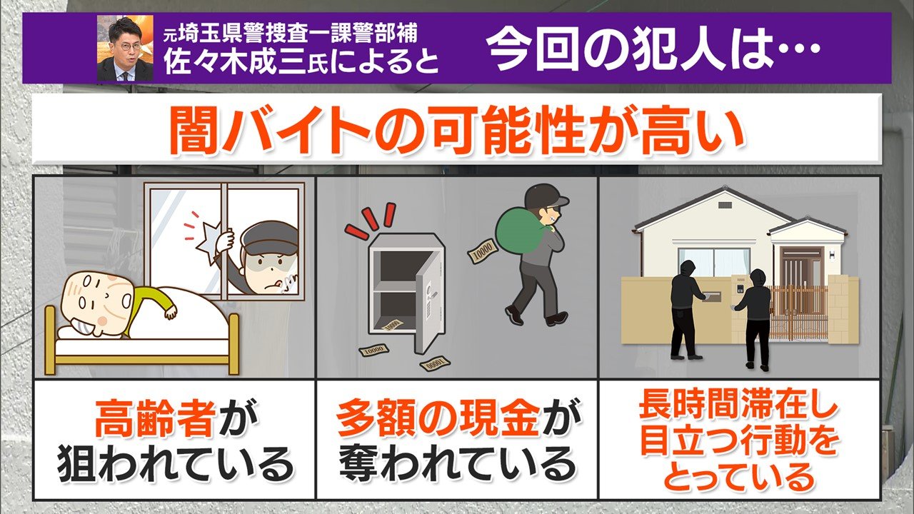 元埼玉県警捜査一課警部補の佐々木成三氏は、今回の事件は「闇バイト」が関係している可能性が非常に高いといいます。