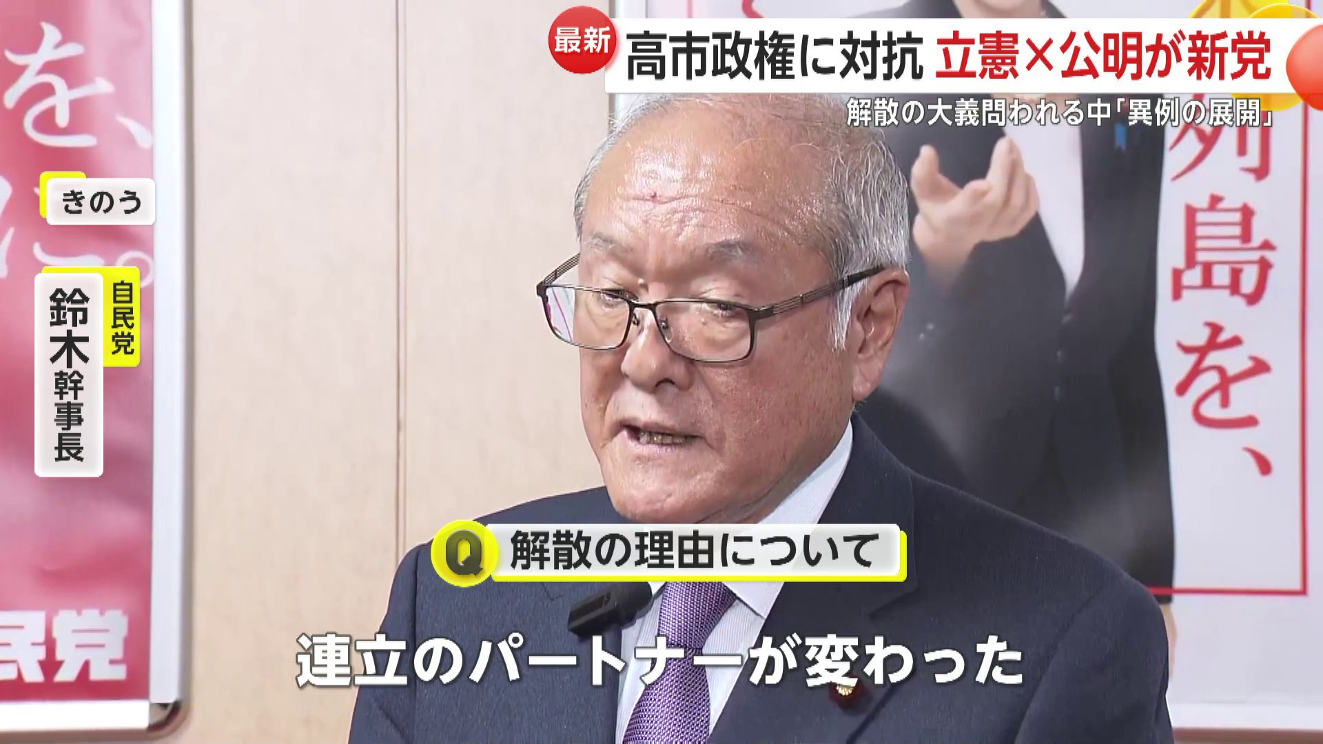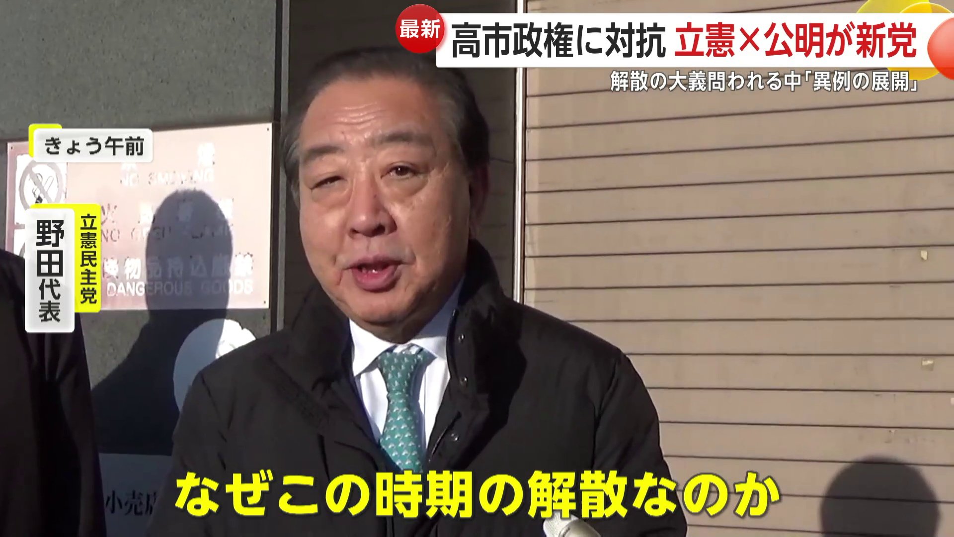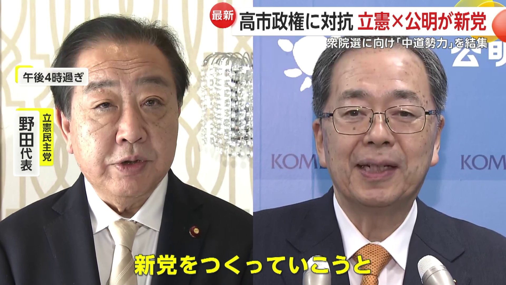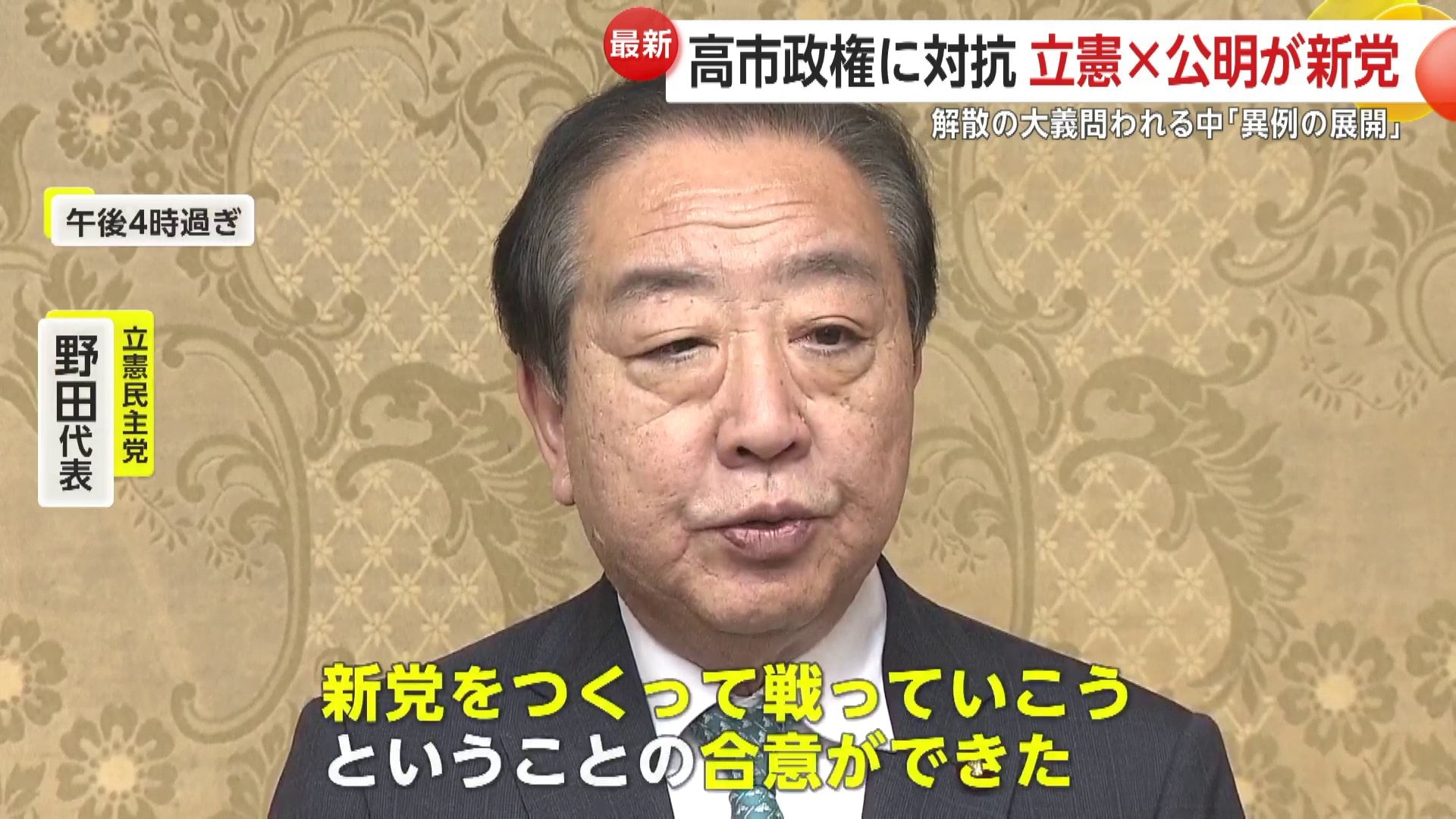 高市政権に対抗するため、中道勢力を結集する新党結成で合意。