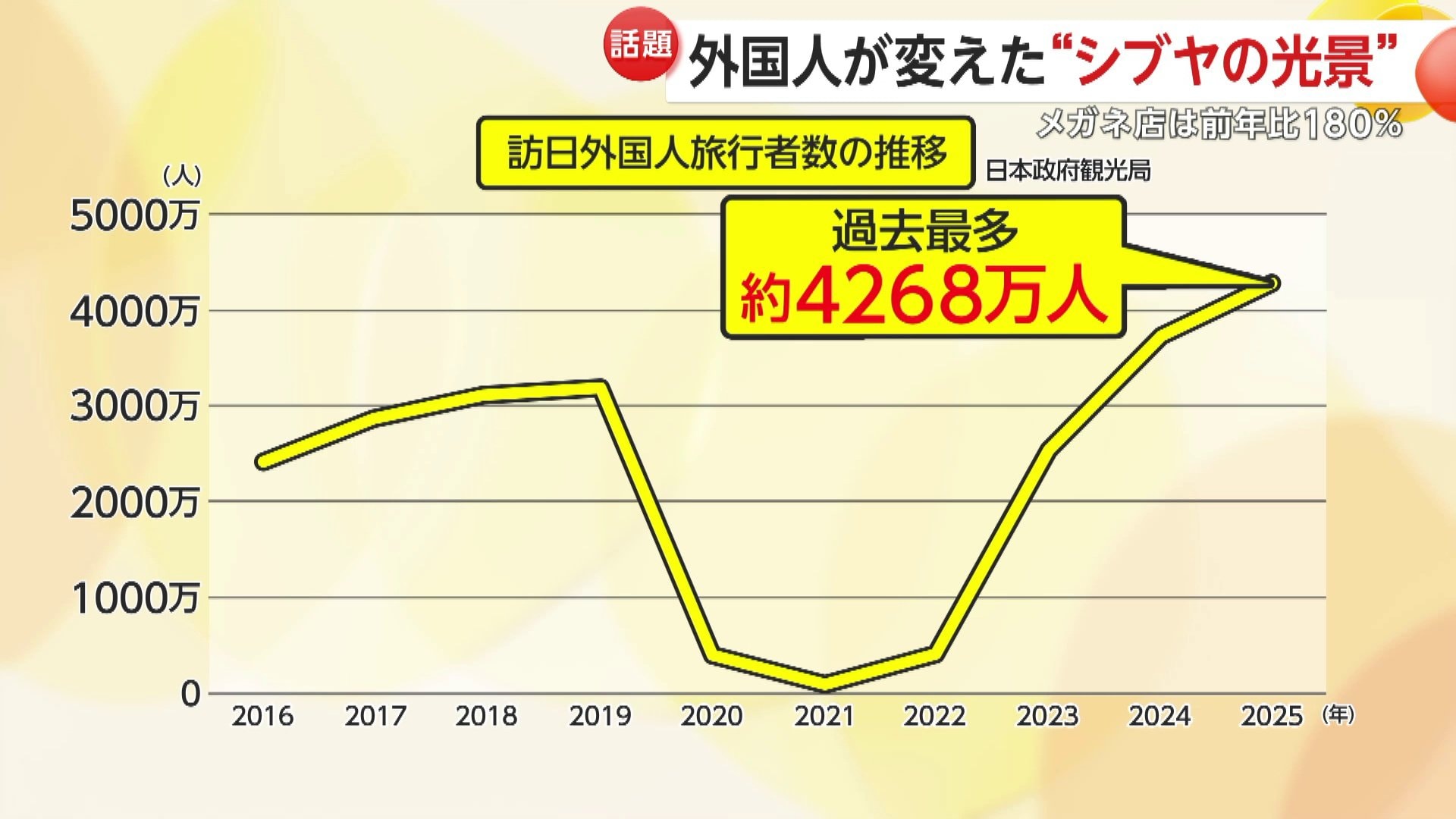 2025年1年間に、日本を訪れた外国人旅行者の数は、史上初めて4000万人を超えて、過去最多となる4268万3600人に到達。