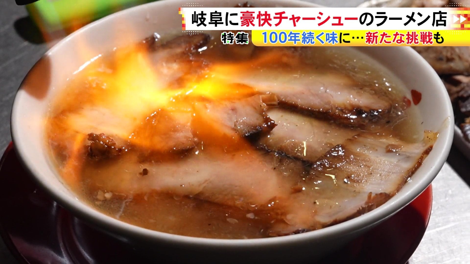 麺は昔ながらの中太ストレート麺。自慢の焼豚をたっぷり盛り、バーナーで香ばしく炙って完成です。あっさりとした味わいの中に感じる深いコク。全国からファンが訪れる、笠松名物の「焼豚ラーメン」(1050円)です。