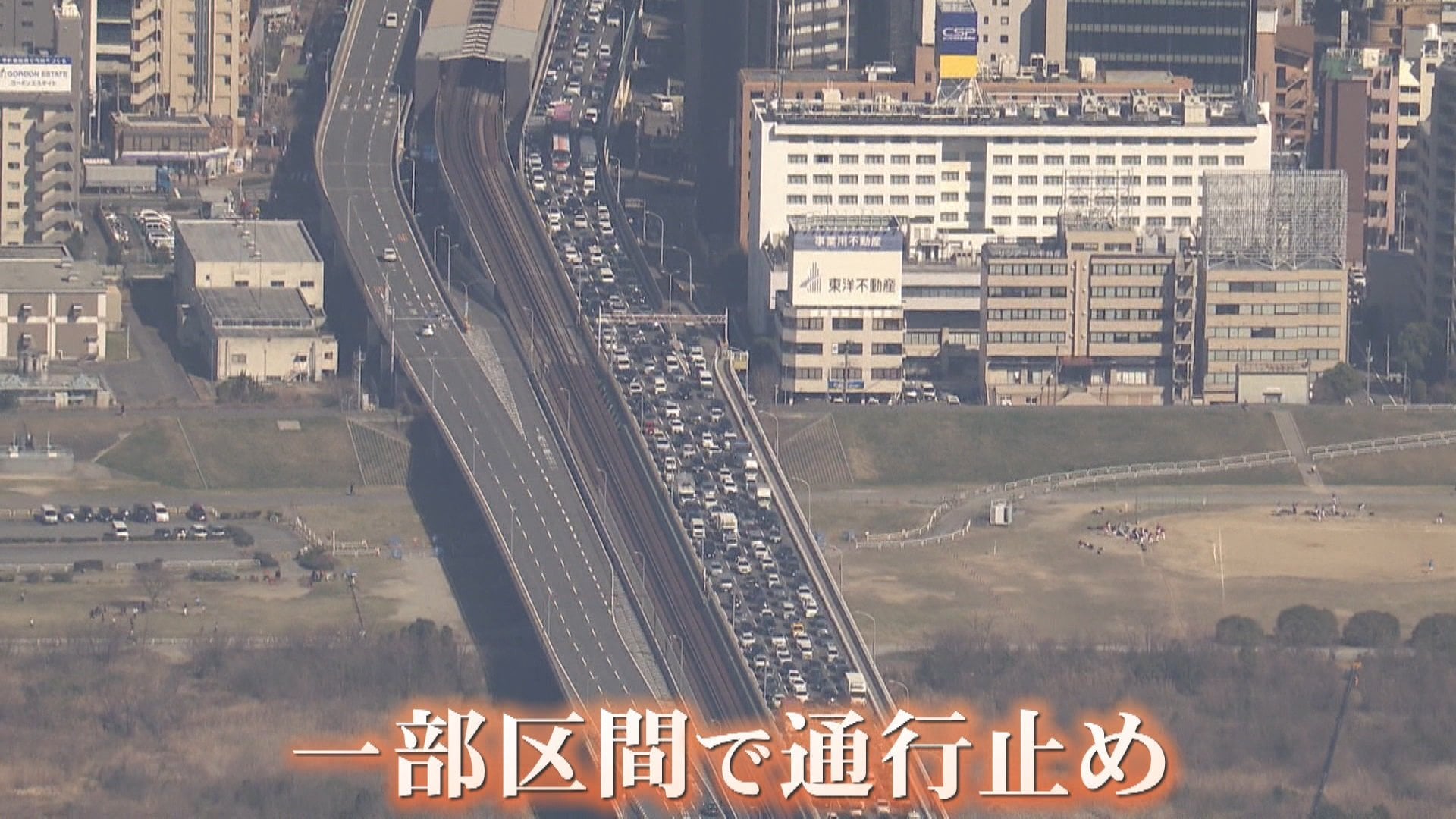 警察によると、パイプは一時10m以上も地上にせり上がり、午前9時過ぎに撮影された映像では高速道路の高架に接触しそうな状態でした。