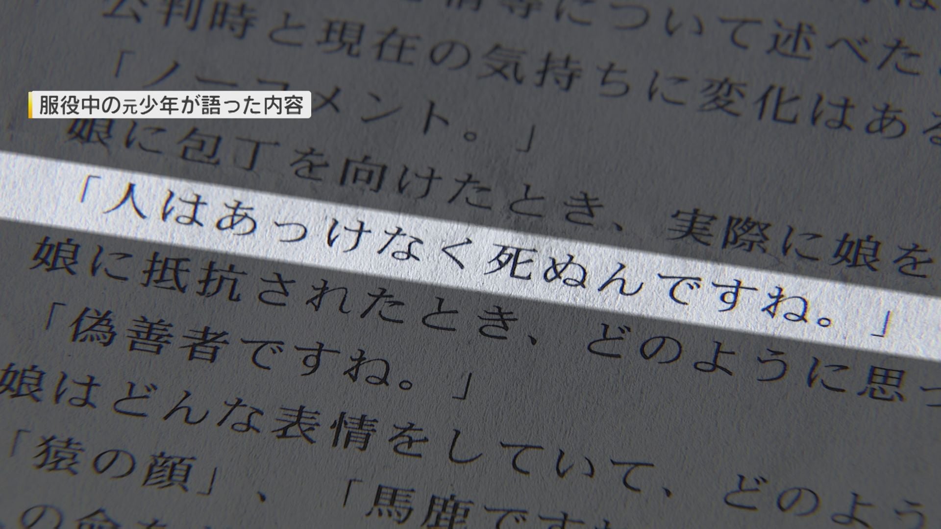 「15歳でやってて、無差別の殺人ですよ。それで親が、責任がないっておかしいじゃないですか。裁判でも刺した時の動機が『自分の母親と重なった』と言っていた。これ一番大きな証拠だと思うんですよね、母親の影響があるって。私は母親にちゃんとこの事件と向き合って、娘にも償いをしながら生きていってほしい」(吉松弥里さんの母親 2025年9月6日取材)